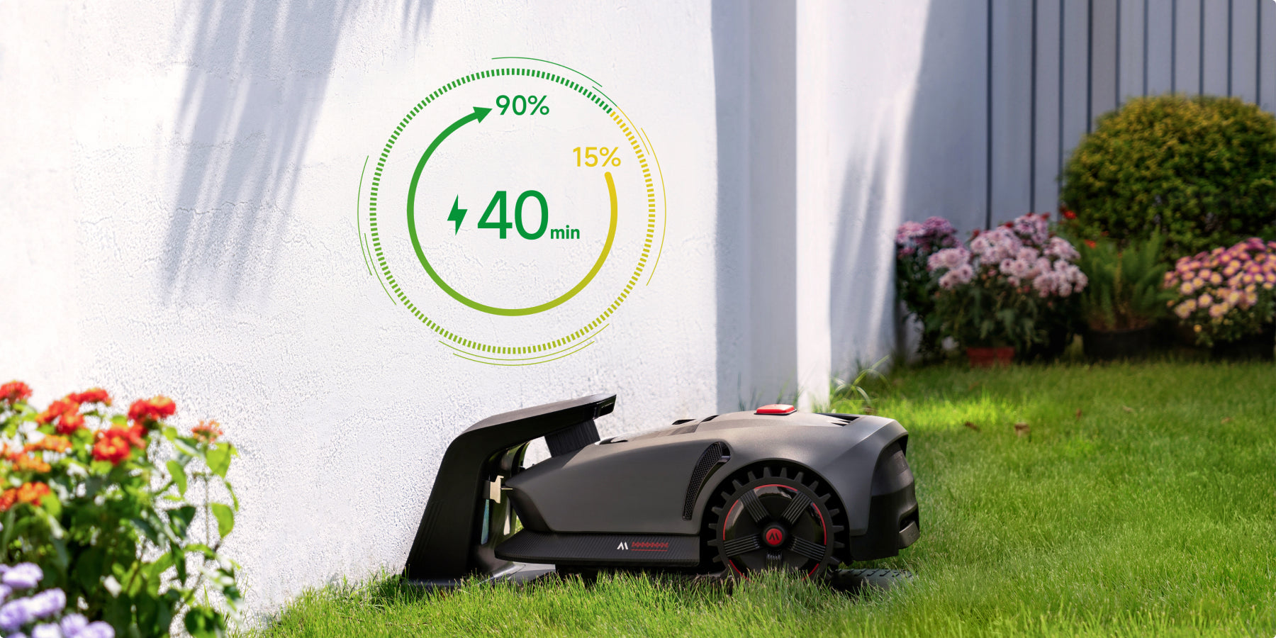 Fast charging takes MOVA 1000 from 15% to 90% in just 40 minutes*, significantly boosting mowing efficiency to cover more area daily.