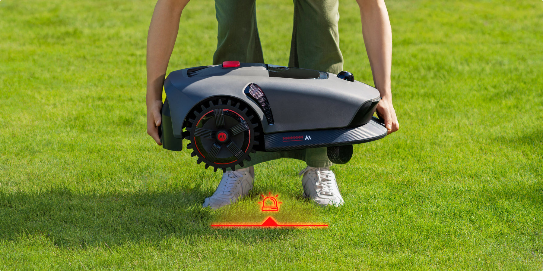 The high-precision LiDAR (30m* range) provides a 360° view, allowing the MOVA 1000/600 to perceive 3D surroundings, autonomously navigate, and construct real-time yard maps.