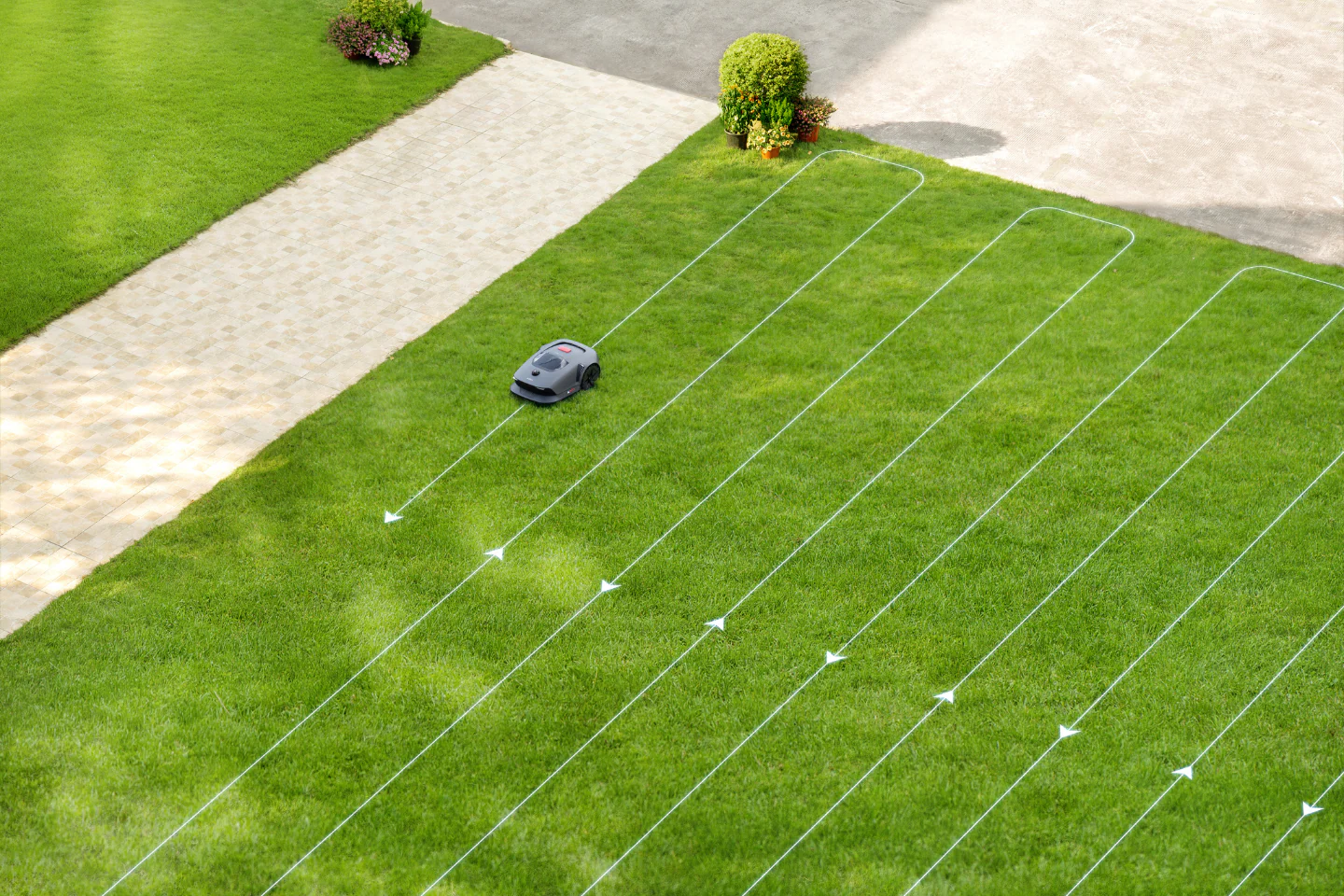 Customize your lawn's pattern: direct your mower to follow a fixed angle, 90° chequerboard, or alternating turns to perfectly match your aesthetic.