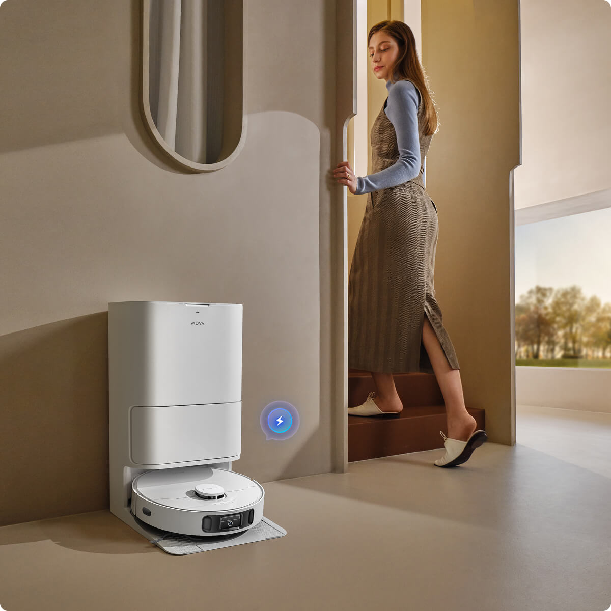 The E40 Ultra's extensive water tanks enable automatic cleaning, letting it scrub away tough stains and messes hands-free.