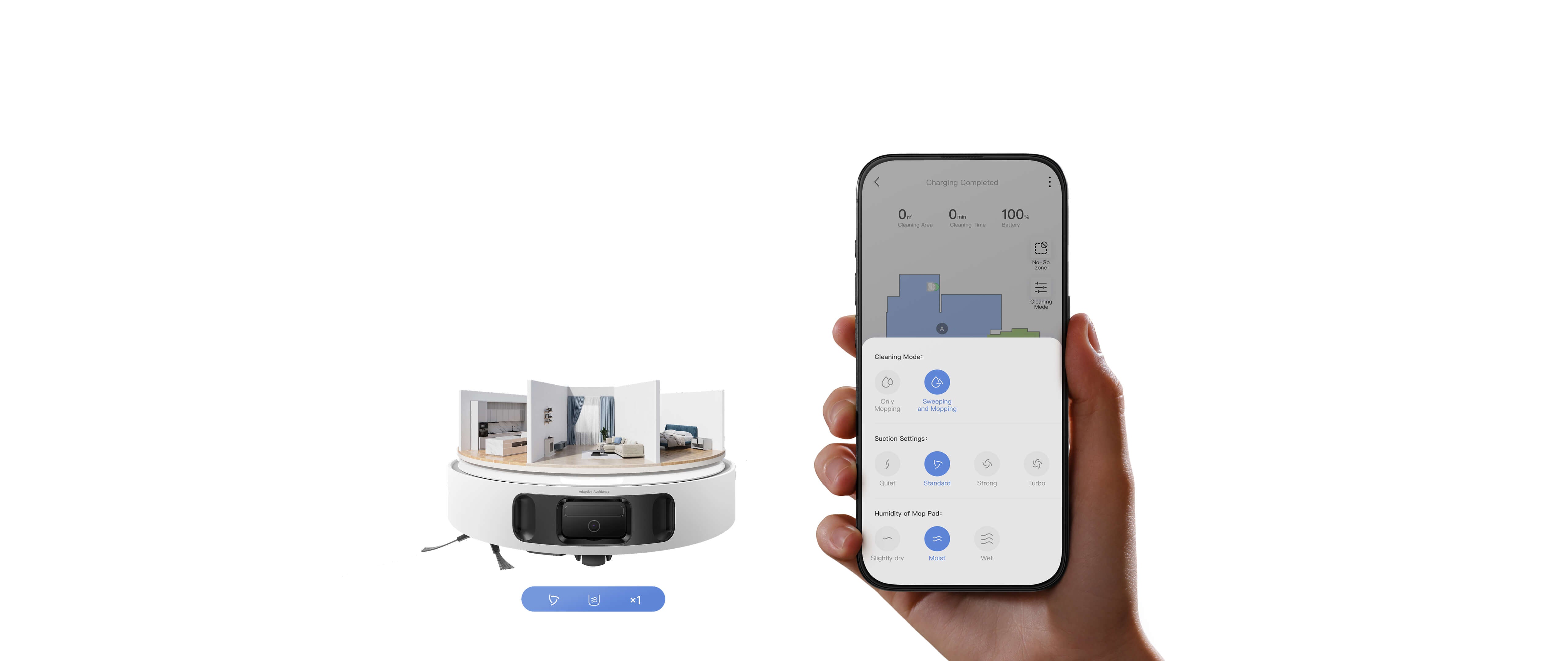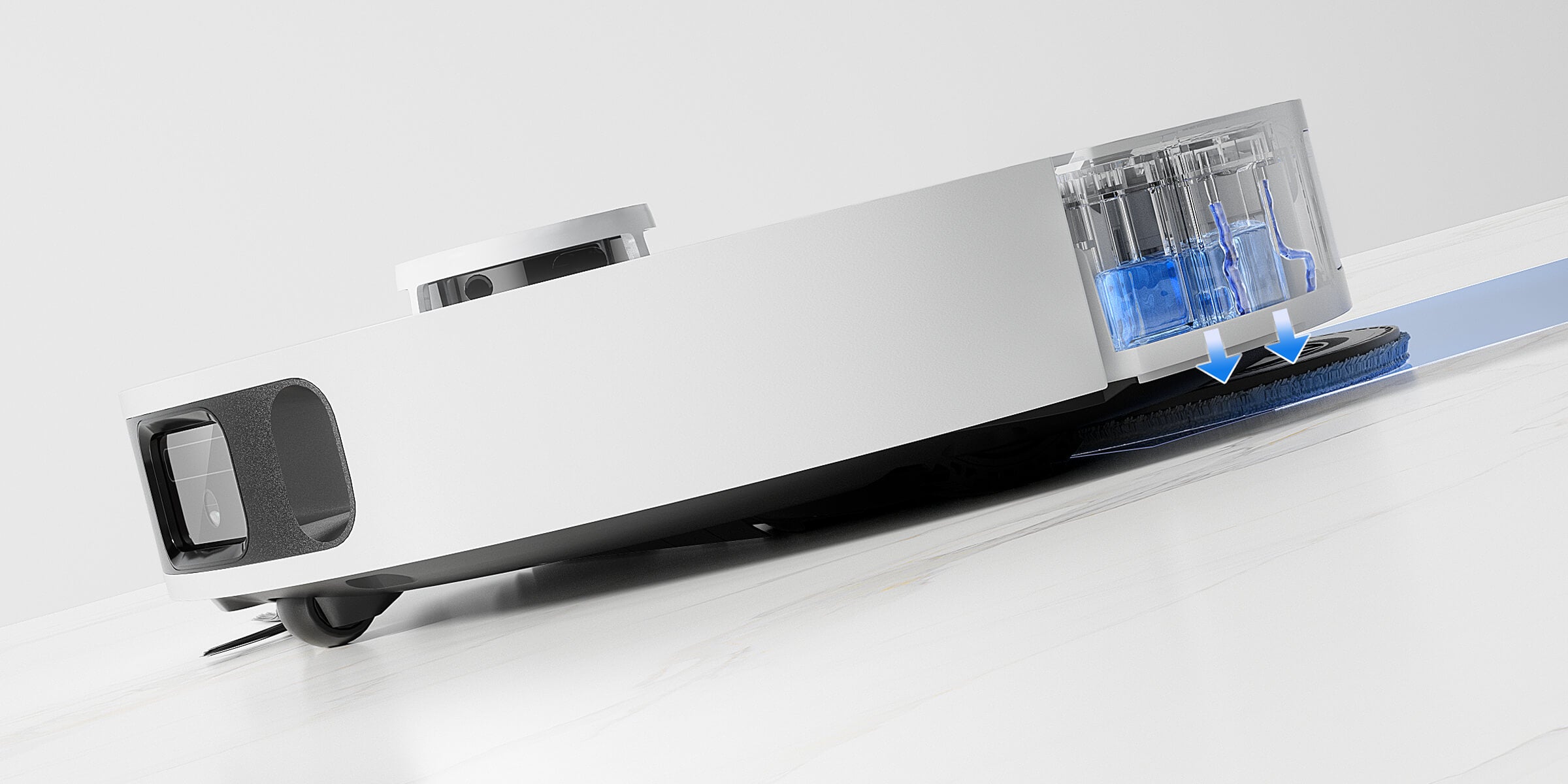 Automatic mop washing eliminates dirty work. Dual 4L and 4.5L water tanks allow the E40 Ultra to clean its own pads.