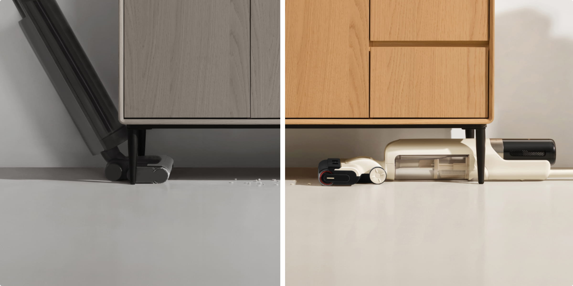 Unlock the potential of the dual-edge brush, designed to excel along walls and baseboards, effectively removing dust and debris for a thorough clean—even down to 0mm*.