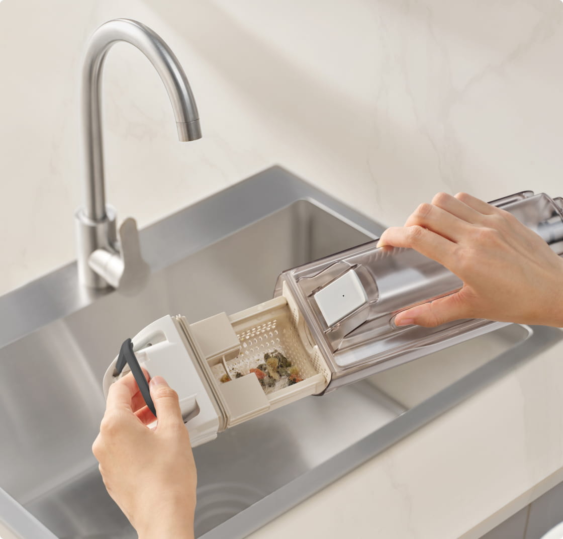 The easy-to-empty filter container separates solid dirt from liquid waste, preventing drain clogs and simplifying your waste disposal process.