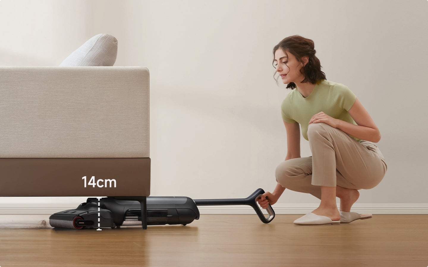 Easily accesses low spaces, fitting into gaps as narrow as 14cm*, ensuring complete dust removal under furniture and hard-to-reach areas.