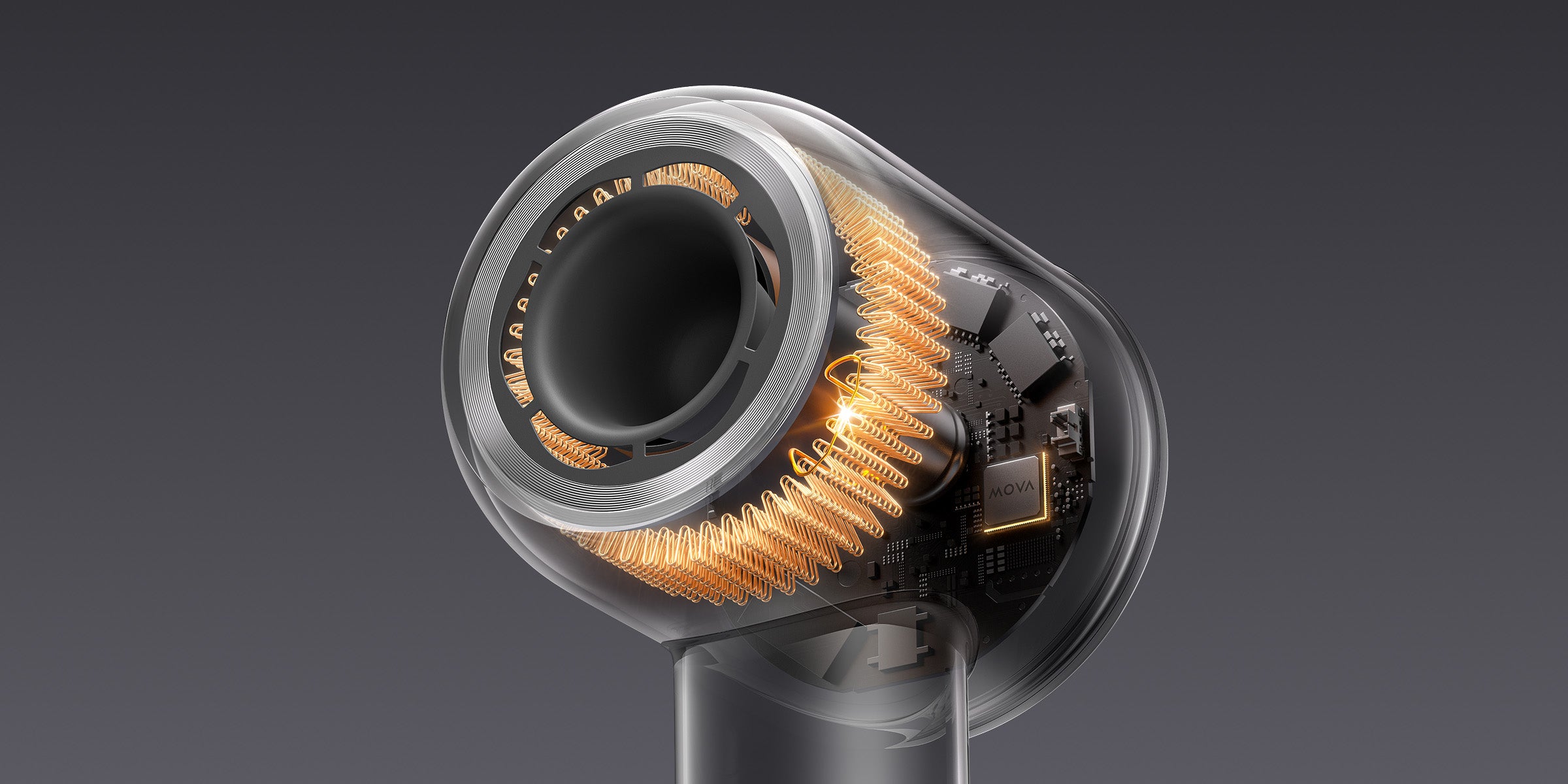 Unlike traditional air outlet designs that can cause hot spots and potential burns, AeroBlossom™ Tech ensures an even surface temperature. The unique flower-shaped design helps distribute airflow more evenly and covers a larger area for faster, more efficient drying.