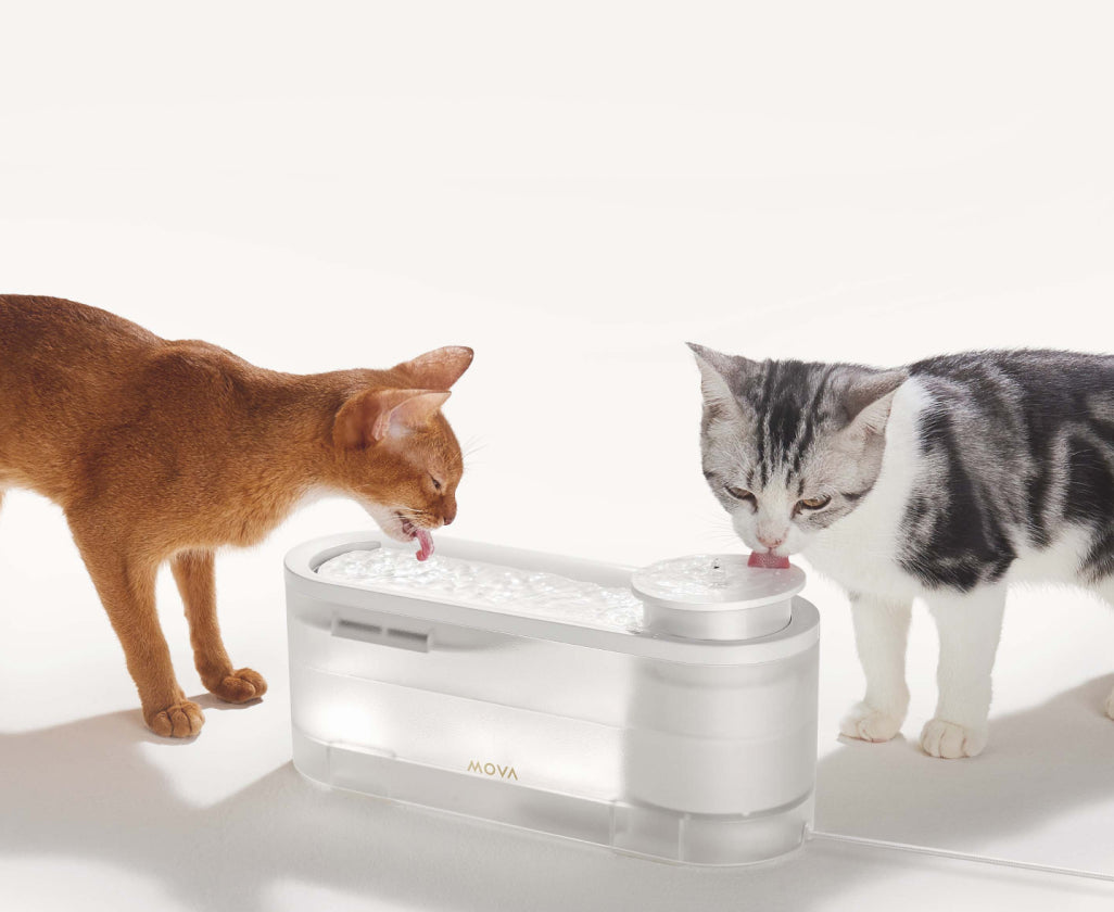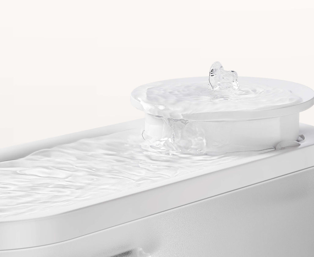 Designed with an elongated tray and adjustable heights, this tray features a wide surface and a fountain-like waterfall. This setup enhances your cat's drinking angle for greater comfort. Additionally, the increased water area helps reduce competition among cats for drinking.