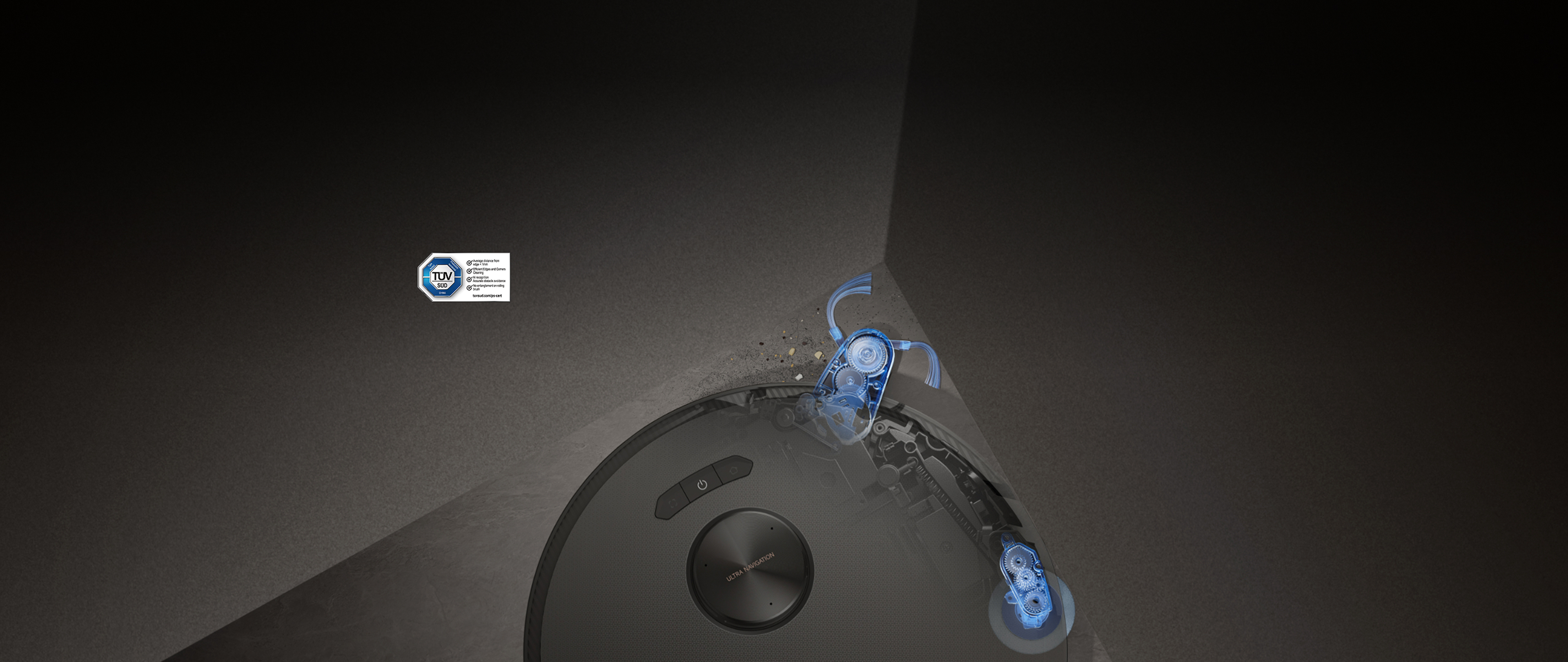 7. * "edge-to-edge cleaning tech for both sweeping & mopping": Certified by TÜV SÜD Germany.Actual performance may vary depending on usage.