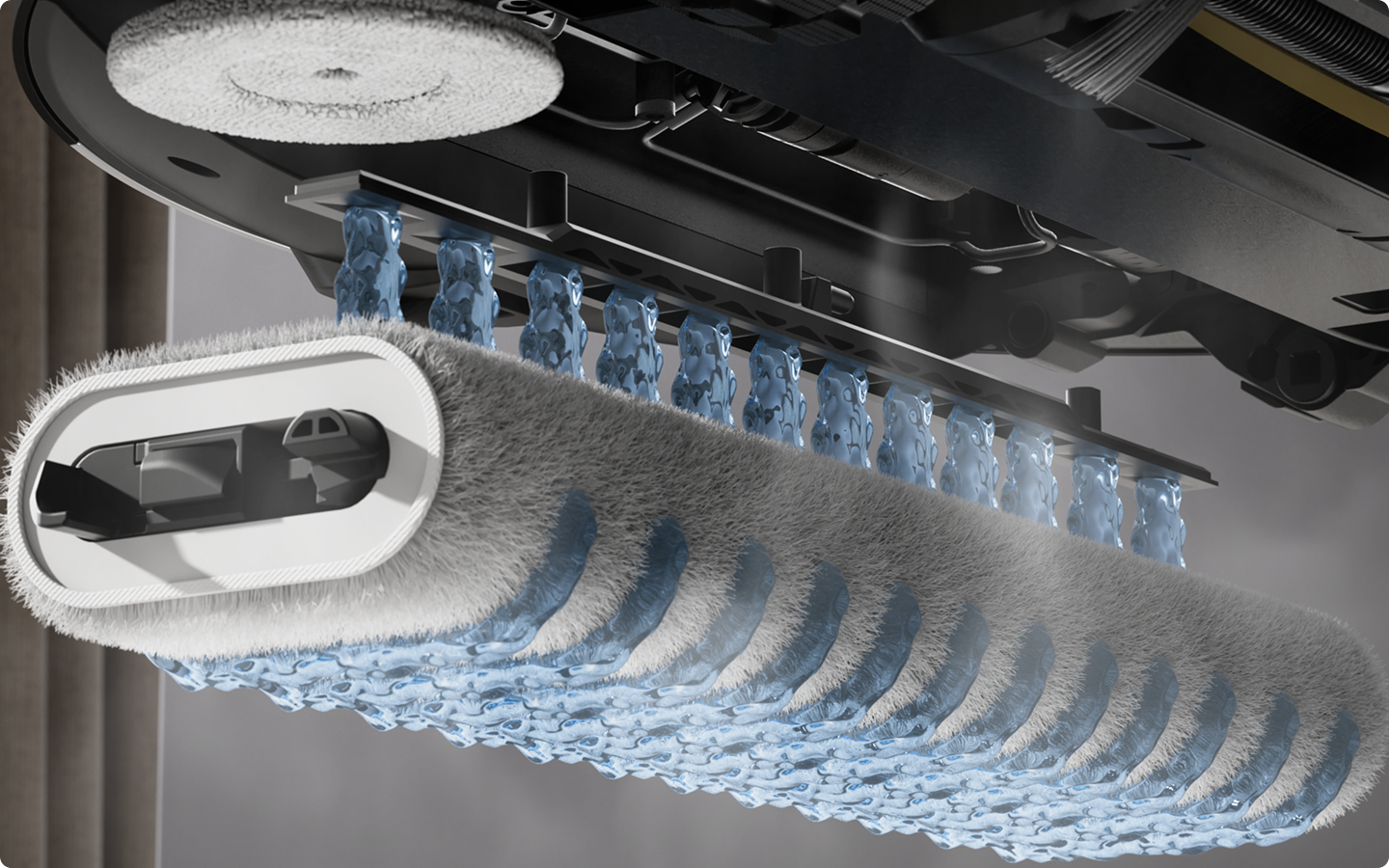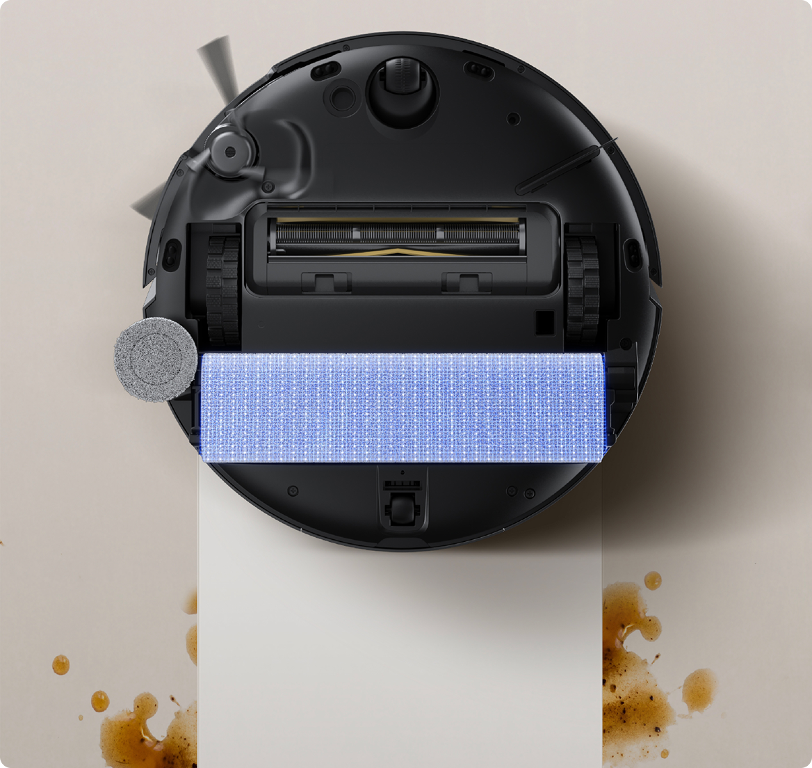 The Mop Condition Detection AI on the Robot Vacuum's main unit detects when the mop is dirty and sends it back to the base station for rewashing, ensuring a clean mop for clean mopping.
